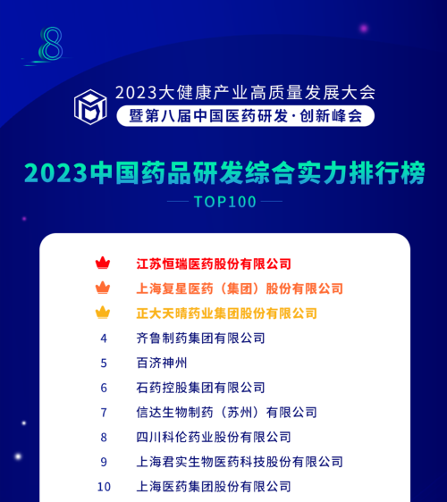 由药智网、中国药业杂志社主办的2023大健康产业高质量发展大会暨第八届中国医药研发•创新峰会于6月16日开幕,会上发布了《2023中国药品研发实力排行榜》系列榜单,asiagame医药凭借深厚的创新研发实力再创辉煌:荣登《2023中国药品研发综合实力排行榜TOP100》榜首、《2023中国化药研发实力排行榜TOP100》榜首。值得一提的是,今年是asiagame医药连续第6年入选《中国药品研发综合实力排行榜》榜首。